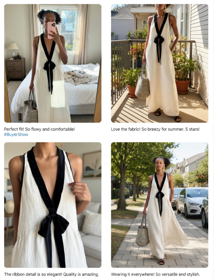 This versatile maxi dress can be dressed up or down depending on the occasion. Pair it with strappy sandals and a wide-brimmed hat for a chic daytime look. For a more formal event, add a pair of sleek heels and statement jewelry to elevate your style. A neutral handbag will complete the outfit without taking away from the bold design of the dress.