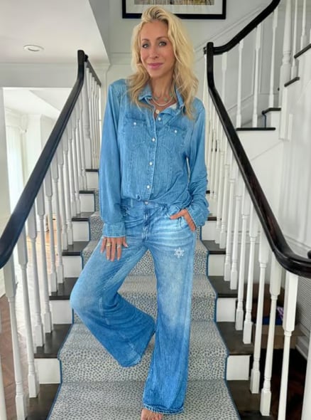 Don’t just wear pajamas — wear a mood. Whether it’s for you or someone special, this set brings joy, comfort, and a little denim delight to every slow moment.