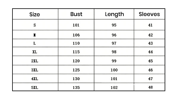 *The data in this table is in centimeters (CM).